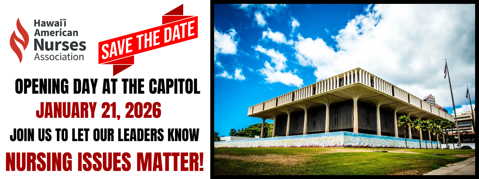 Join us at the Hawaiʻi State Capitol to make sure our leaders know NURSING ISSUES MATTER. * Wednesday, January 21, 2026 * 415 S Beretania Street,...